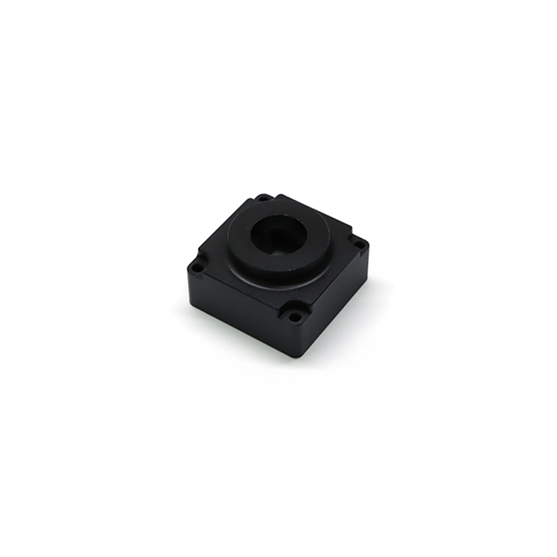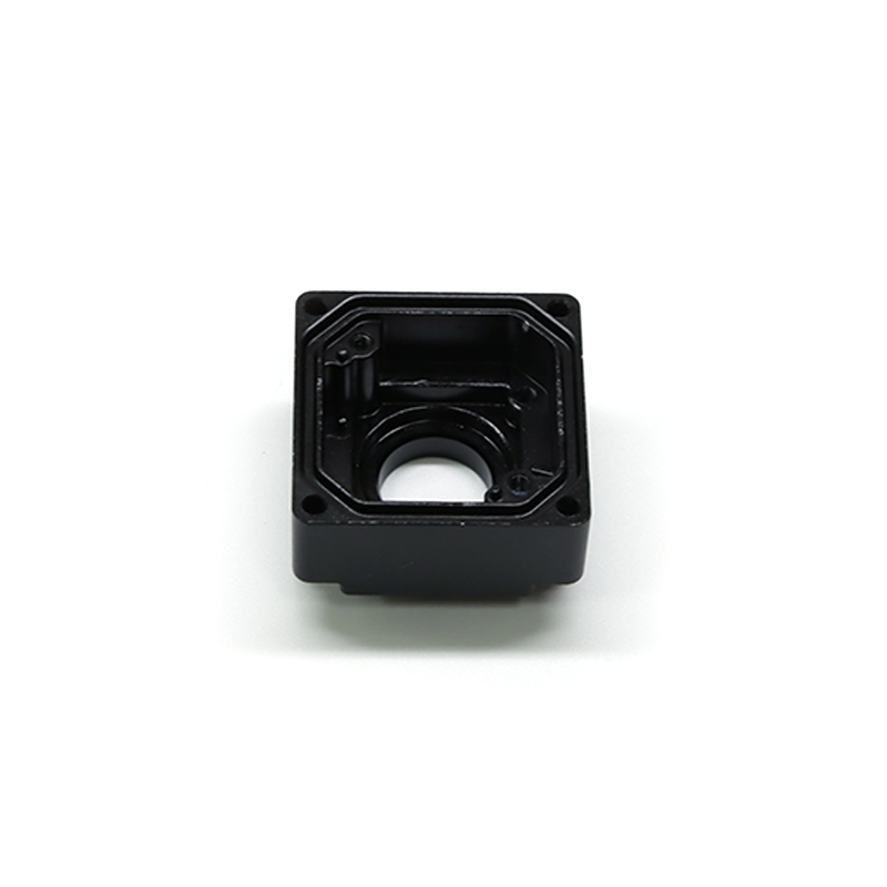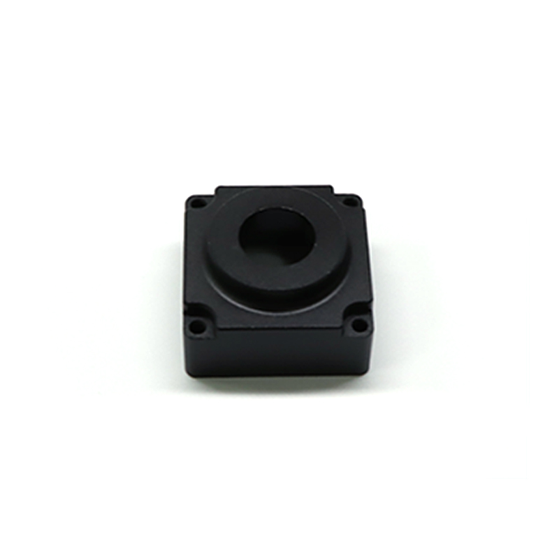 This is a black POM material car mounted LiDAR aluminum shell, forming a square structure overall, has a matte surface treatment and a compact and simple appearance; Above is arranged a circular passage opening with a plurality of screw openings arranged around it. The structural design balances light weight and high precision and has good dimensional stability and good environmental resistance.
