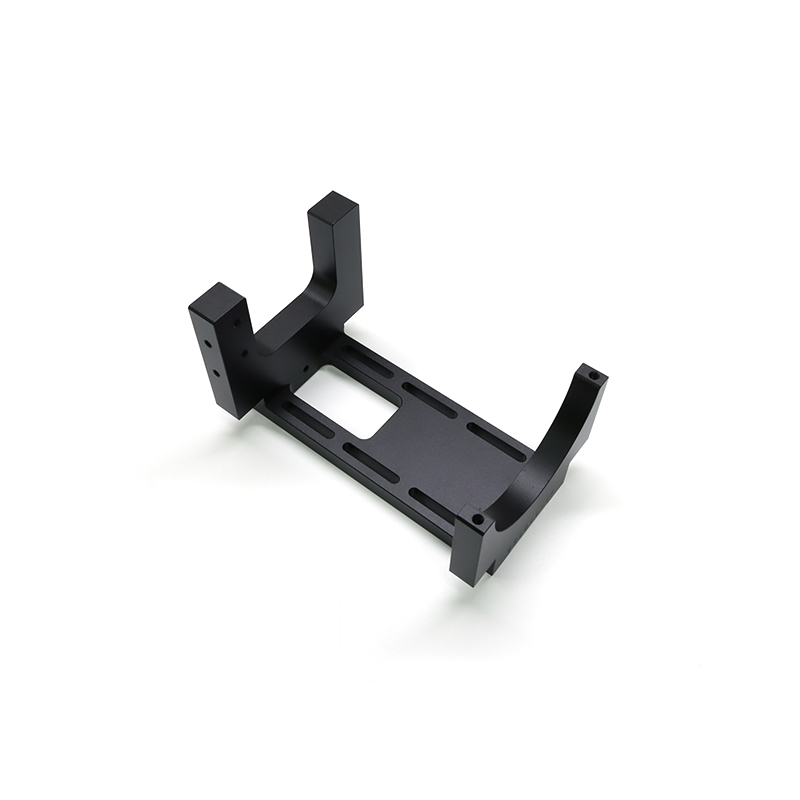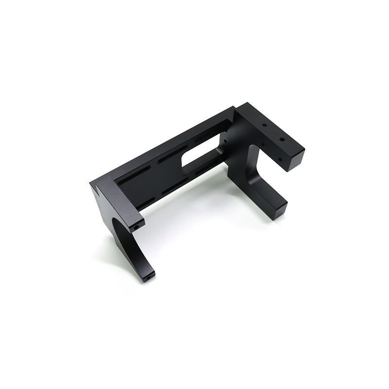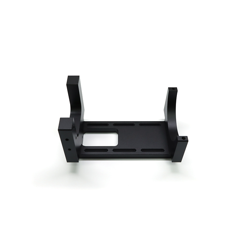 The support is made of black POM material (polymethylene), characterized by a U-shaped overall structure with a matte surface finish, which ensures a compact and aerodynamic appearance. The upper part has an arc-shaped opening for firmly attaching the cylindrical components, while the sides have reinforcing ribs and numerous mounting holes, which balance structural resistance and assembly flexibility. The base has a symmetrical L-shaped shape that ensures excellent stability.