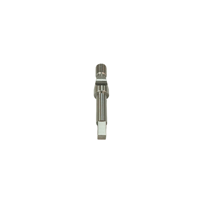 The part is a stainless steel locking pin shaft made from 304 stainless steel by CNC Turning. One of its ends has outer threads for fastening it to a fixed base or for coupling it with a screw, whereby an axial locking is achieved. The middle section is equipped with a hole for elastic blocking rings or a stepped structure, which enables the assembly of an elastic ring or acts as a limiting/anti-slip function. The other end has a square or flat square head that facilitates coupling with hexagonal wrenches or tools for reliable assembly and disassembly.