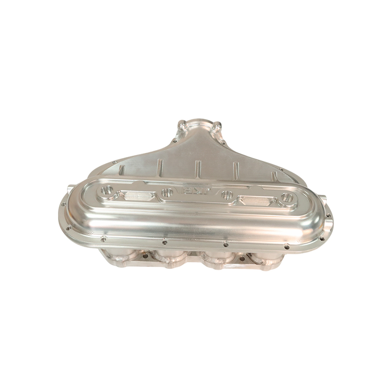 The engine housing is made of 6061-T5 aluminum alloy by gravity melting, then machined and surface treated to complete production. The upper part of the shell is a wide intake manifold cover plate, with multiple longitudinal reinforcement ribs and groove type guide channels; The central part adopts CNC engraving or laser engraving to produce clear markings; multiple cylindrical convex interfaces, with high coaxiality and regular arrangement of threaded holes to ensure sealing and stable assembly; The edge is equipped with several sets of mounting holes for evenly arranged bolts and adopts an embossed construction, to ensure a smooth and non-protruding surface after locking.