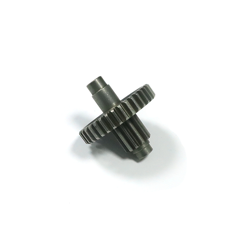 They are dark grey Powder Metallurgy Parts. Its overall structure is in the shape of a cross, with a cylindrical wave in the center and a gear wheel connected at one end. The dental profile is uniform, the surface smooth and it has good mechanical processing accuracy. This product uses high quality iron powder as base material and adopts powder die casting technology to create the body: